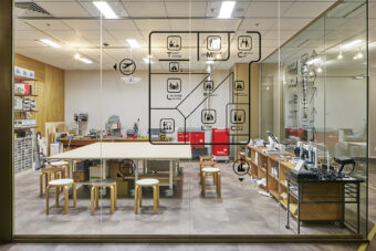 BRIDGE TERMINAL is Sony’s community space on the 24th floor of the Sony City Osaki building. It is planned and now managed by volunteer employees who are from various departments of the company.