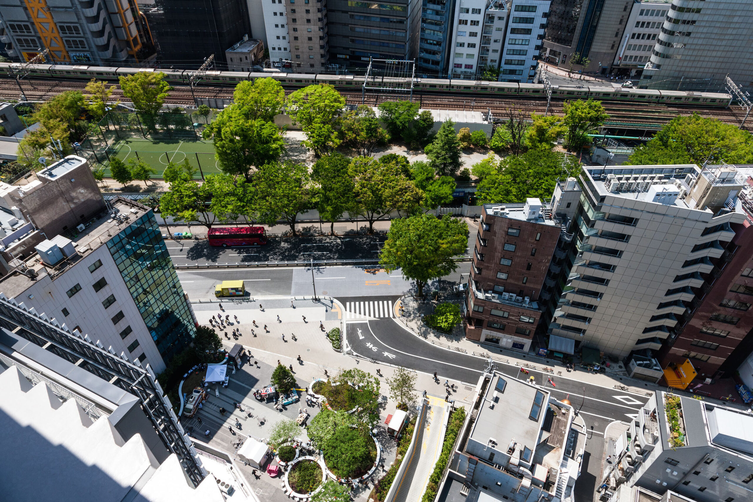 We designed facades and landscapes of a newly opened complex in Shibuya in Tokyo. A square with an area of ​​1000 square meters on the front of the facility and a passage through the building along the terrain guide the flow of people going around the city and return the new use and possibilities to the city as a space.In the plaza, people can find nature and various places. Mixed plants in Japan and the West change the expression by season and growth.