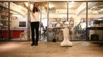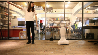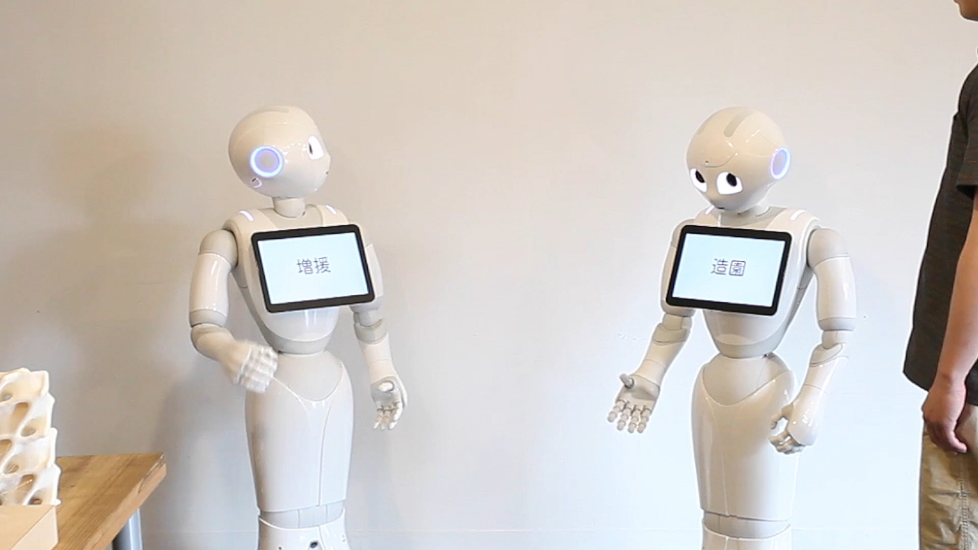 We conducted an implementation experiment aimed at expanding the auditory and visual recognition capabilities of the emotional recognition personal robot “Pepper” (SoftBank Corp.) and exploring the potential of machine learning. In the project, using Kinect and the Pepper-specific programming software “Choregraphe,” we focused on three keywords: ① expansion of recognition capabilities, ② machine learning, and ③ interaction. Through these, we successfully achieved several experiments such as recognizing and coordinating human behavior patterns and facilitating interaction between artificial intelligences. Additionally, by utilizing devices such as “Hue” (Philips Corp.), which allows for light color adjustment and on/off control in LAN environments, and directional microphones, we explored the potential for interaction with environments interfaced by artificial intelligence. The project video includes scenes of Peppers engaging in “riddle-solving” and experiments conducted by members of the noiz group. <Pepper Expansion Experiment by noiz Members, 2016>