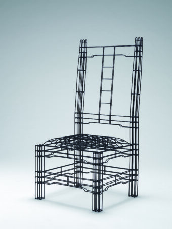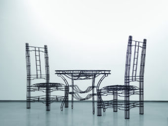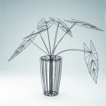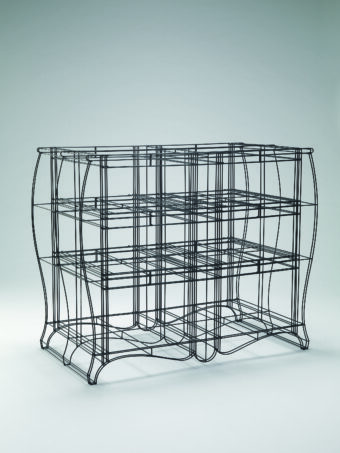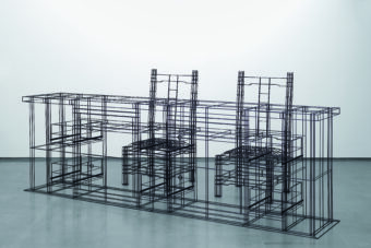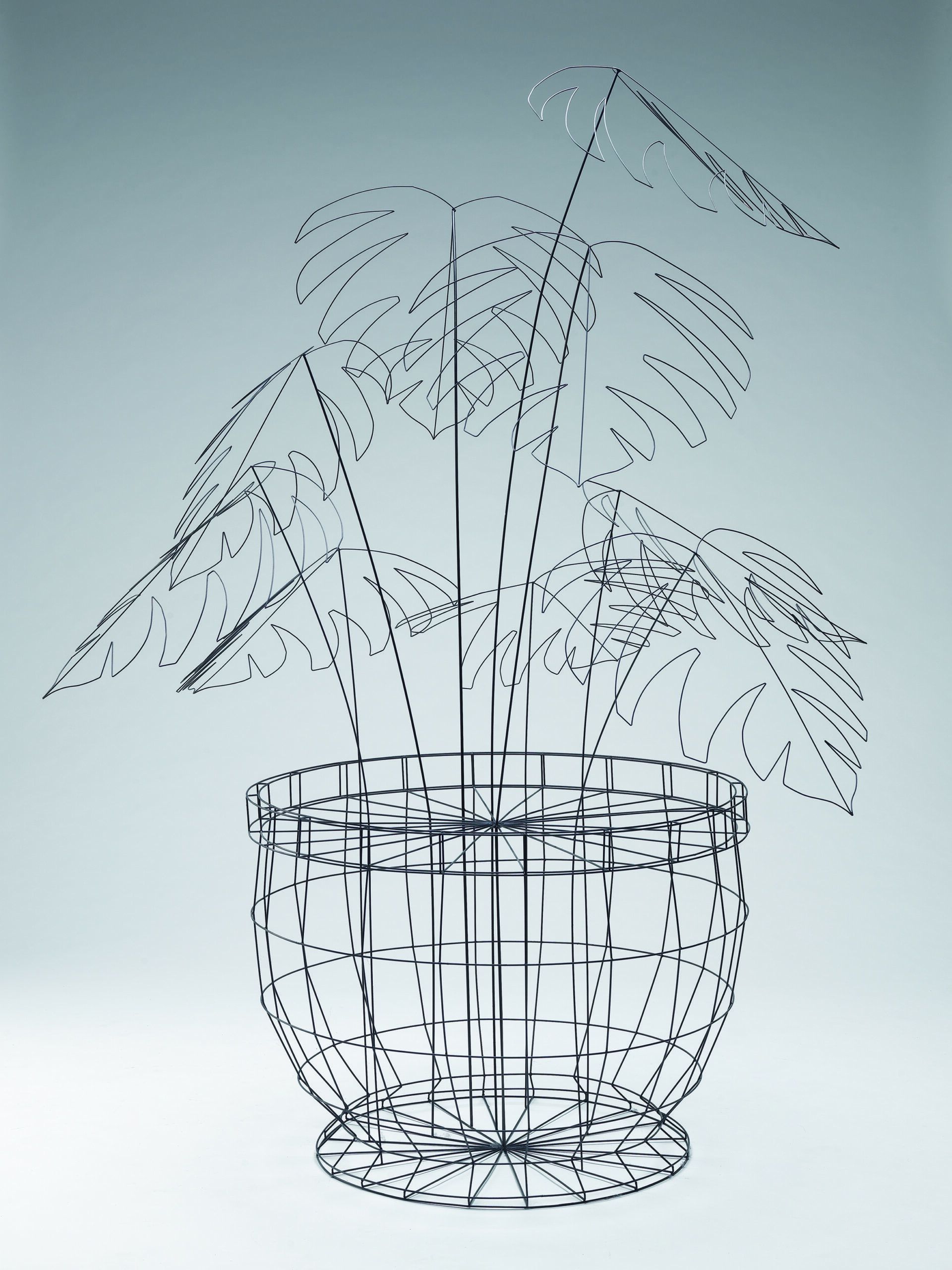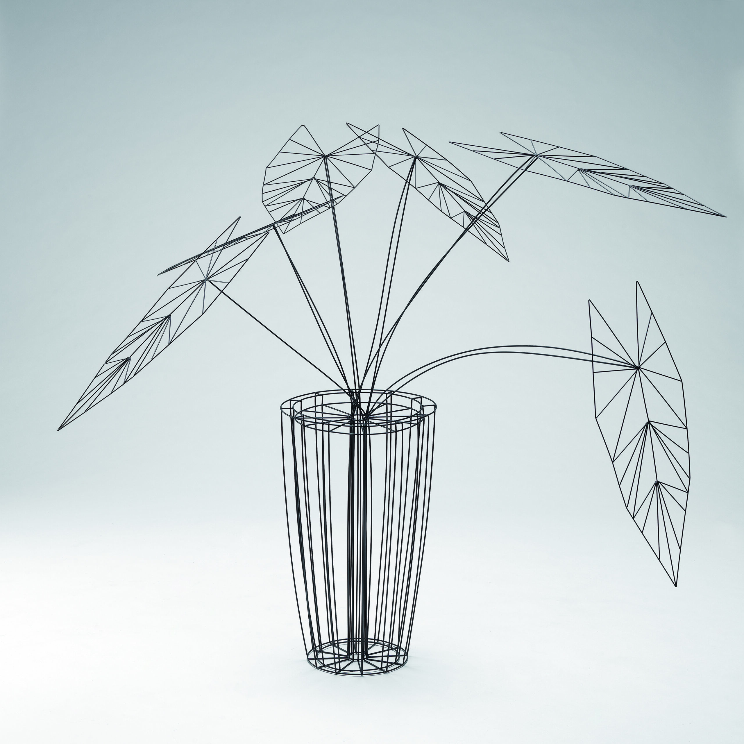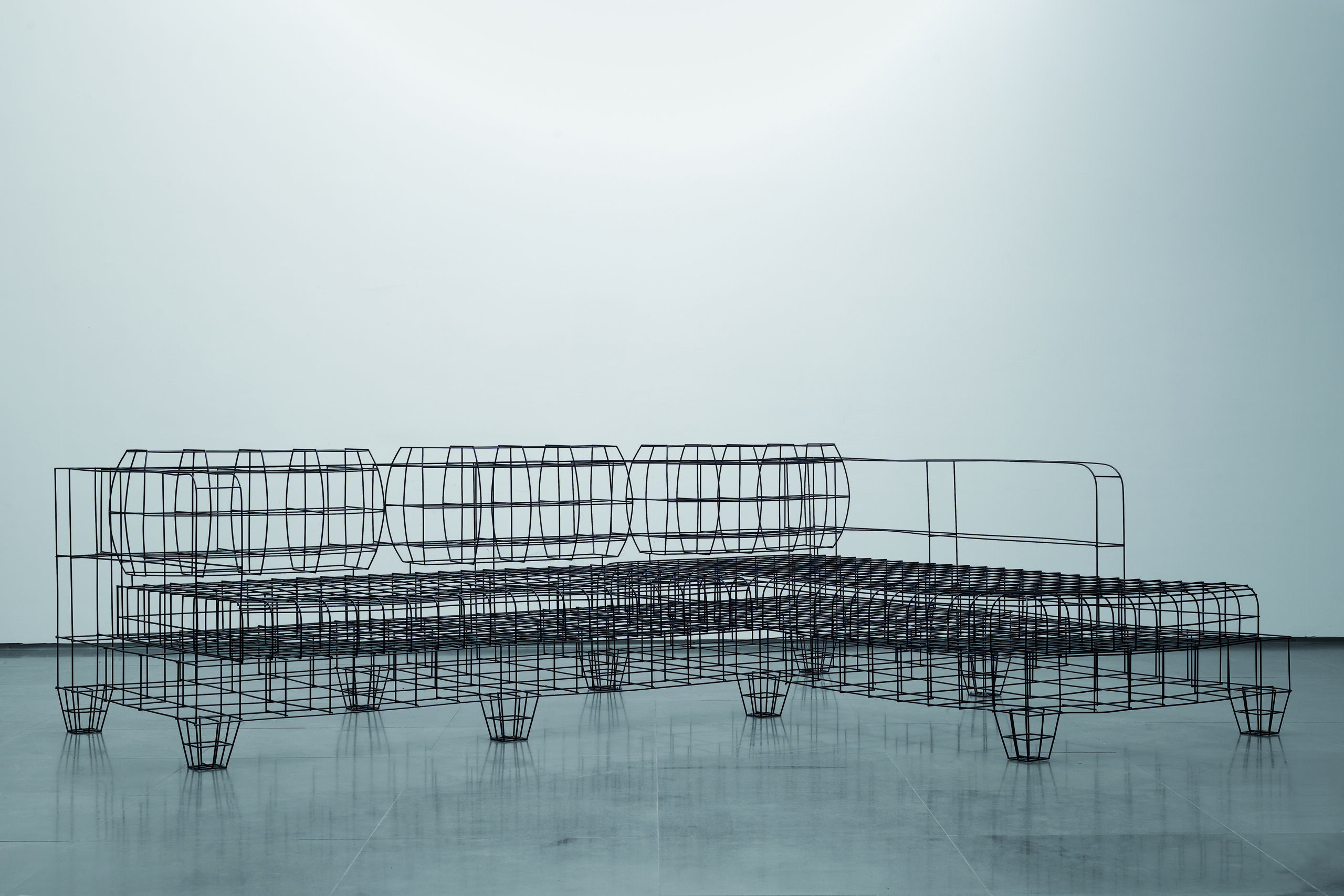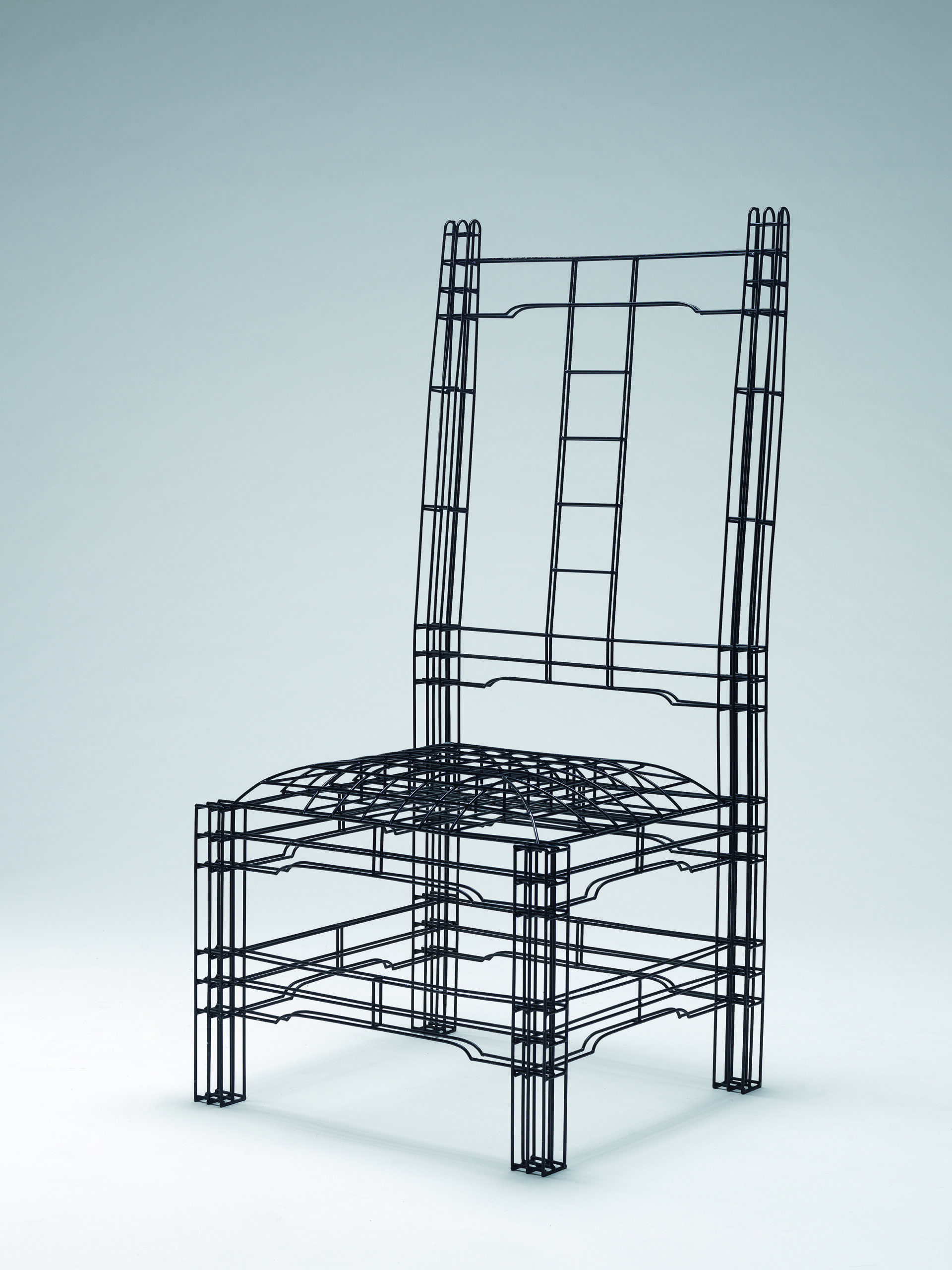 ワイヤフレームの構造は3mmのスティール・ロッドでできており、3Dテンプレートに合わせて曲げ加工され、溶接され、黒い塗料で仕上げられている。これらの家具は、3Dモデリング・ソフトウェアのディスプレイに示される原図のアウトラインを意図的になぞってつくられており、ヴァーチュアルな情報が現実に立ち上がる様相をつくりだしている。 この家具が実在する場所に置かれるとき、美術館の空間は「ビットスペース」に転換される。
