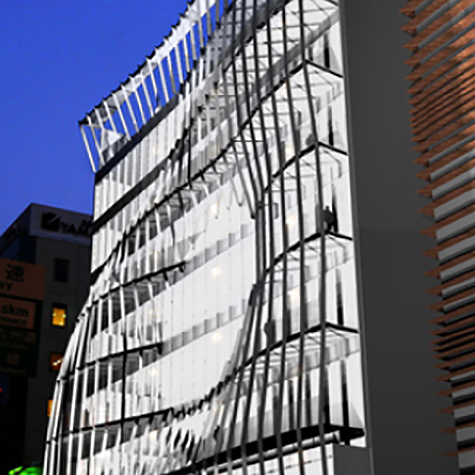 次元拡張の第1歩として、3次元空間に時間軸を加えたことで、建築そのものや色がインタラクティブに動きます。