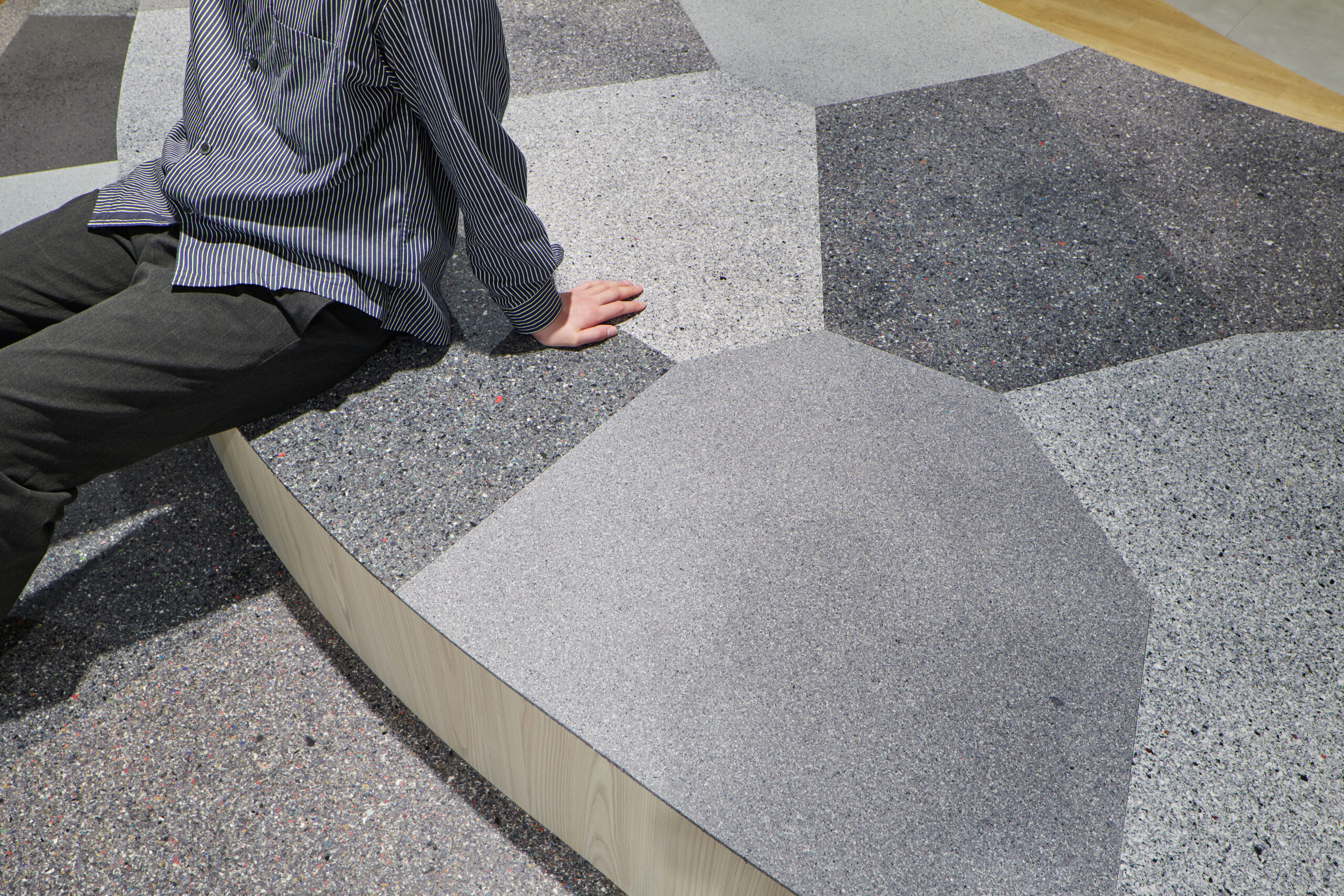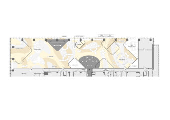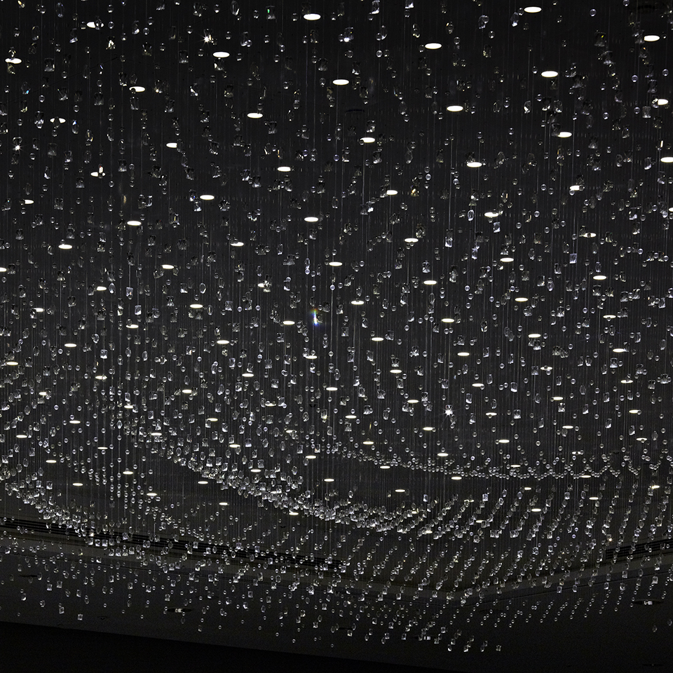 Furthermore, by overlaying the static planar system with a dynamic Turing pattern of color and material separation, the intention was to create a visual continuity and unity of the space as a whole, while allowing each place to function autonomously. The complex intermingling of actual visibility, the optical effects of glass reflection and refraction, and the Turing pattern, which creates a fluctuating sense of scale, creates a multilayered sense of depth in the space that cannot be experienced without actually being there.