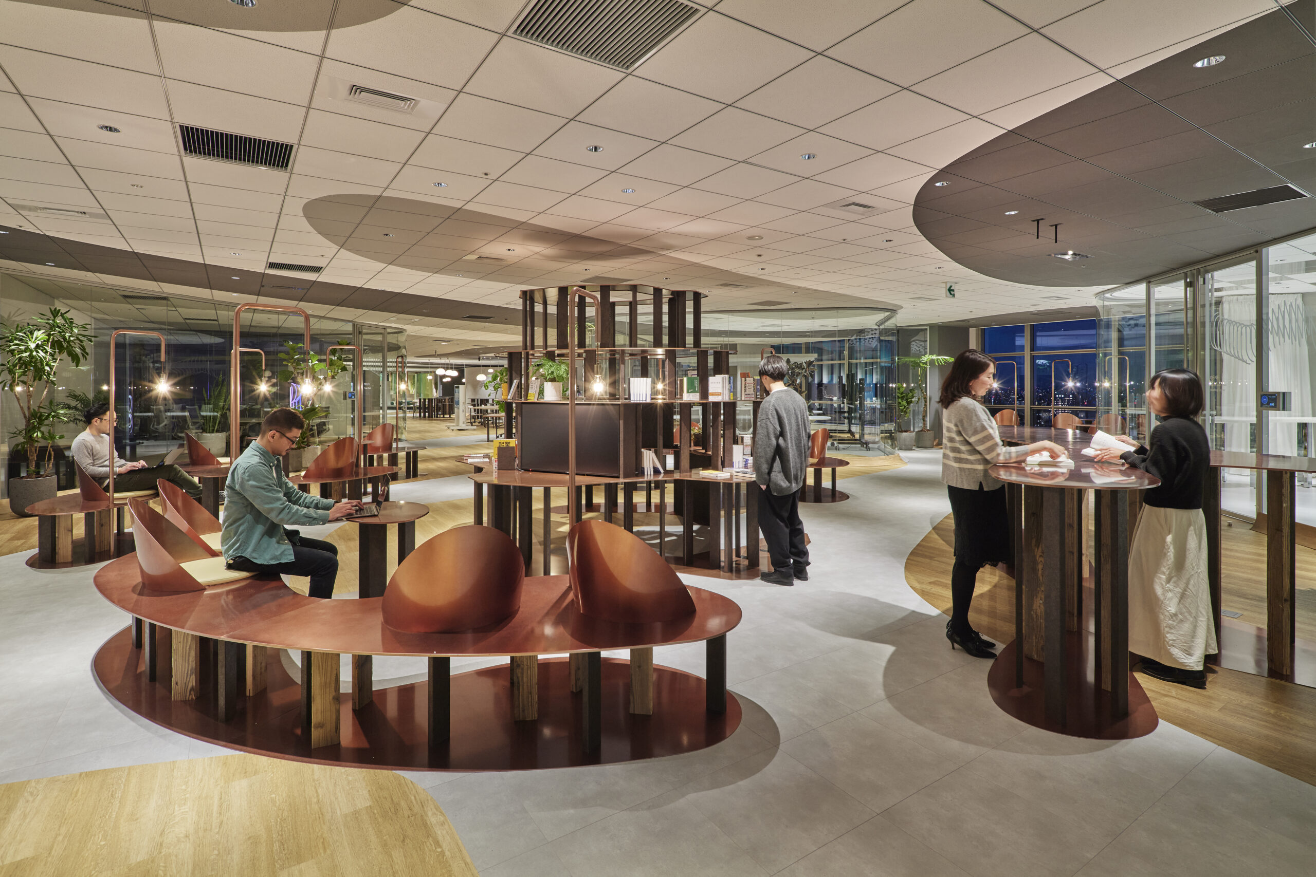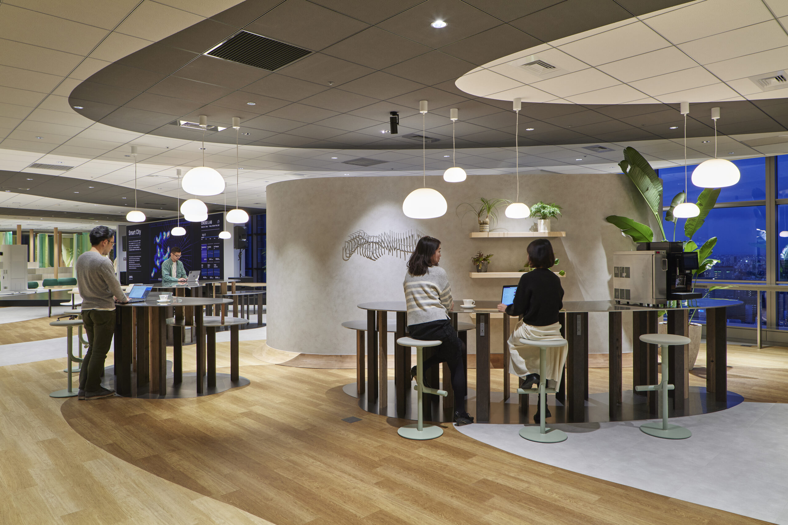 As remote work becomes more common, the meaning of a real workspace is paradoxically being questioned. The space is intended to be an ecosystem where real and virtual, objects and information, diversity and homogeneity, stillness and movement, playing and working, and other contradictory concepts and functions coexist organically, thereby providing an opportunity to rethink the meaning of gathering in the real world and coexisting with the virtual world. The project was designed to create a space like an ecosystem where people can coexist in an organic way.