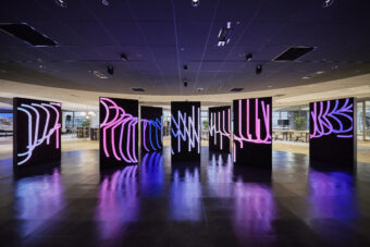 Various digital experiences are incorporated into the park, including a monolith as an interactive display that welcomes guests, a giant 3x10m LED monitor that visualizes data, a robot visitor that connects remote and real places, and a life-size mobile display. The park will be equipped with a variety of digital experiences that will expand the concept of space and redefine the nature of communication.