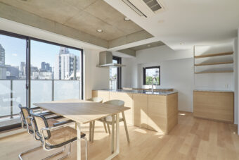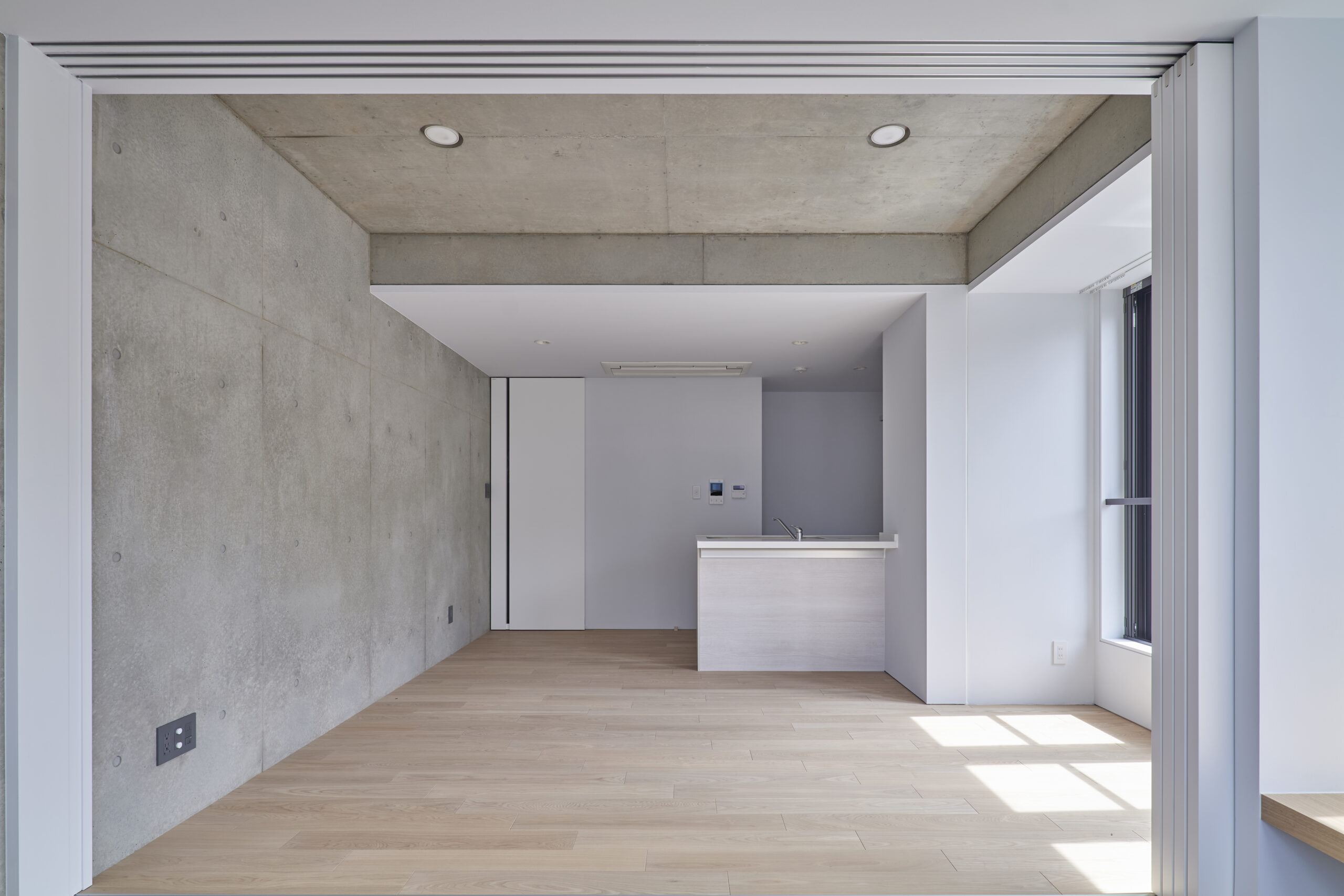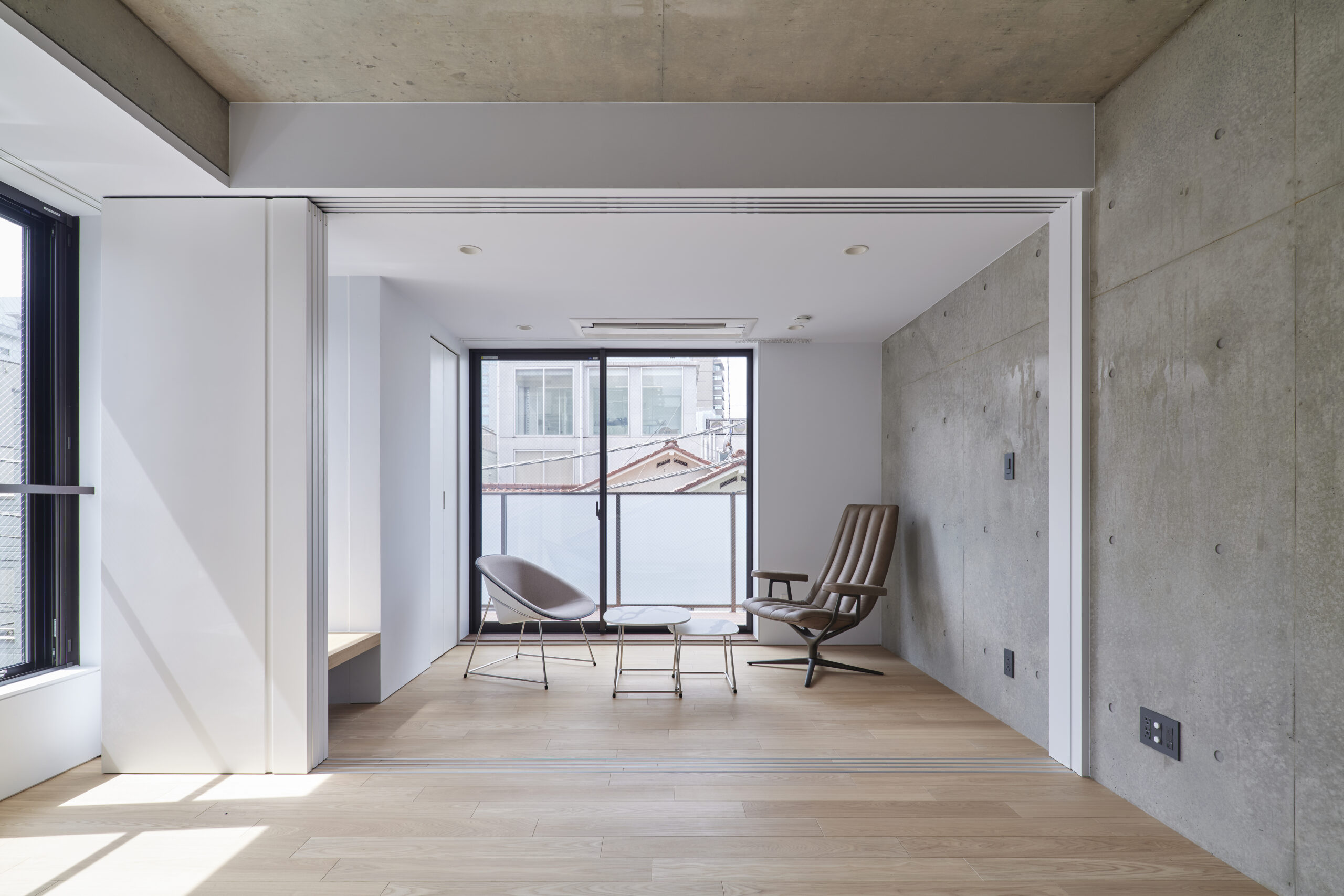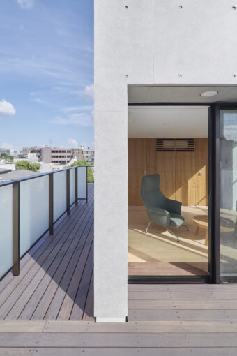 Although compact, the building, located in Tokyo’s residential area, incorporates diverse intermediate spaces connecting the inside and outside. This design allows residents/office users to feel the gradation between the city’s landscape, activities and natural elements such as wind and greenery, creating an experience that truly embodies the essence of urban living/working.