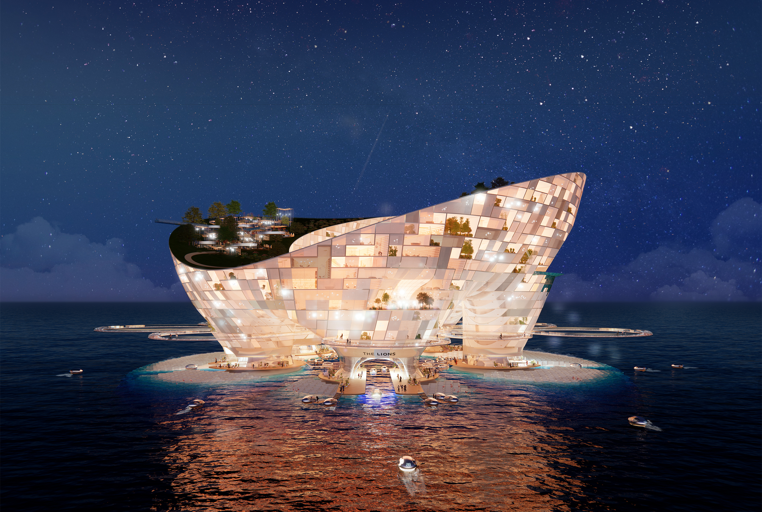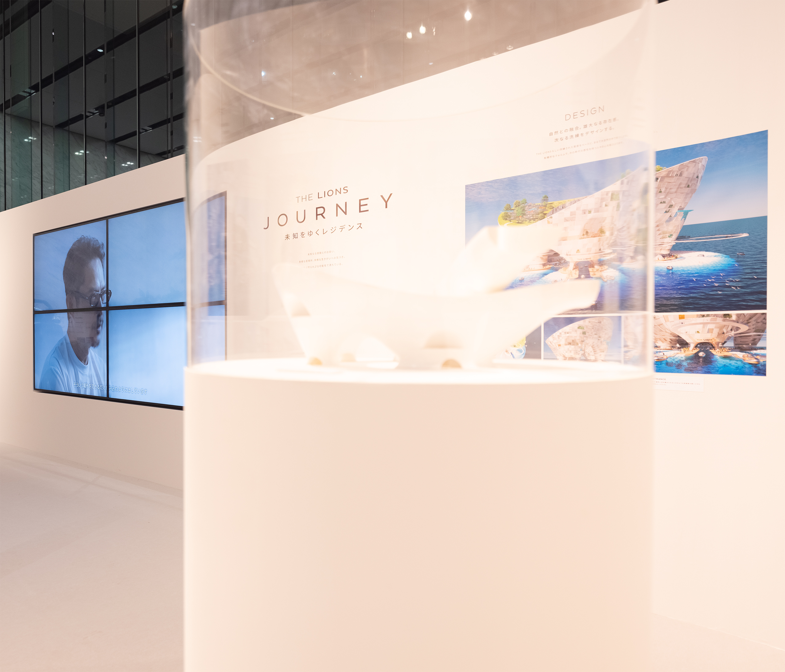 Dentsu and NOIZ proposed a concept to revamp “Lions Mansion,” a brand by Daikyo Corporation, into “THE LIONS.” During a workshop with Daikyo, they developed a concept called “The Continuously Moving Mansion” to meet the theme of “The Ultimate Mansion to Enhance the Value of Life.” They visualized an architectural structure that changes its view from the window, cruising between various ports, creating constant opportunities for diverse encounters and new places to belong, continuously expanding the possibilities of life. The vision was to shift away from the conventional concept of “real estate” towards the idea of a mobile dwelling on the sea.
