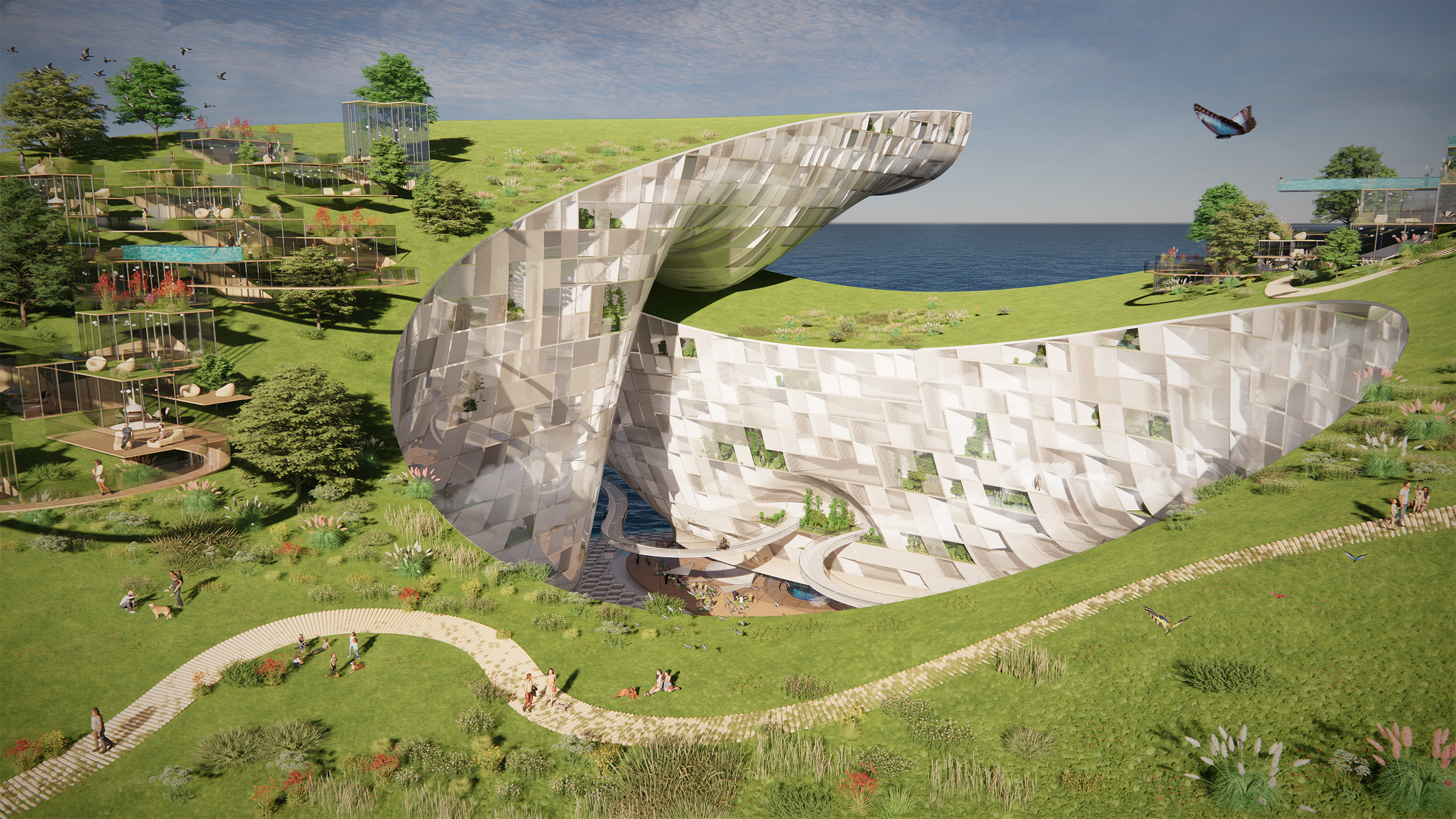 Energy is not just consumed but also generated through wave power technology, allowing the mansion to create energy simply by living on the sea. The design balances the brand’s quality with the sense of being part of nature. From a distance, the structure presents a single awe-inspiring architectural vision. Up close, the façade features a porous design to provide places for various people, birds, microorganisms, and other living things. The rooftop is also designed with lush greenery in mind.