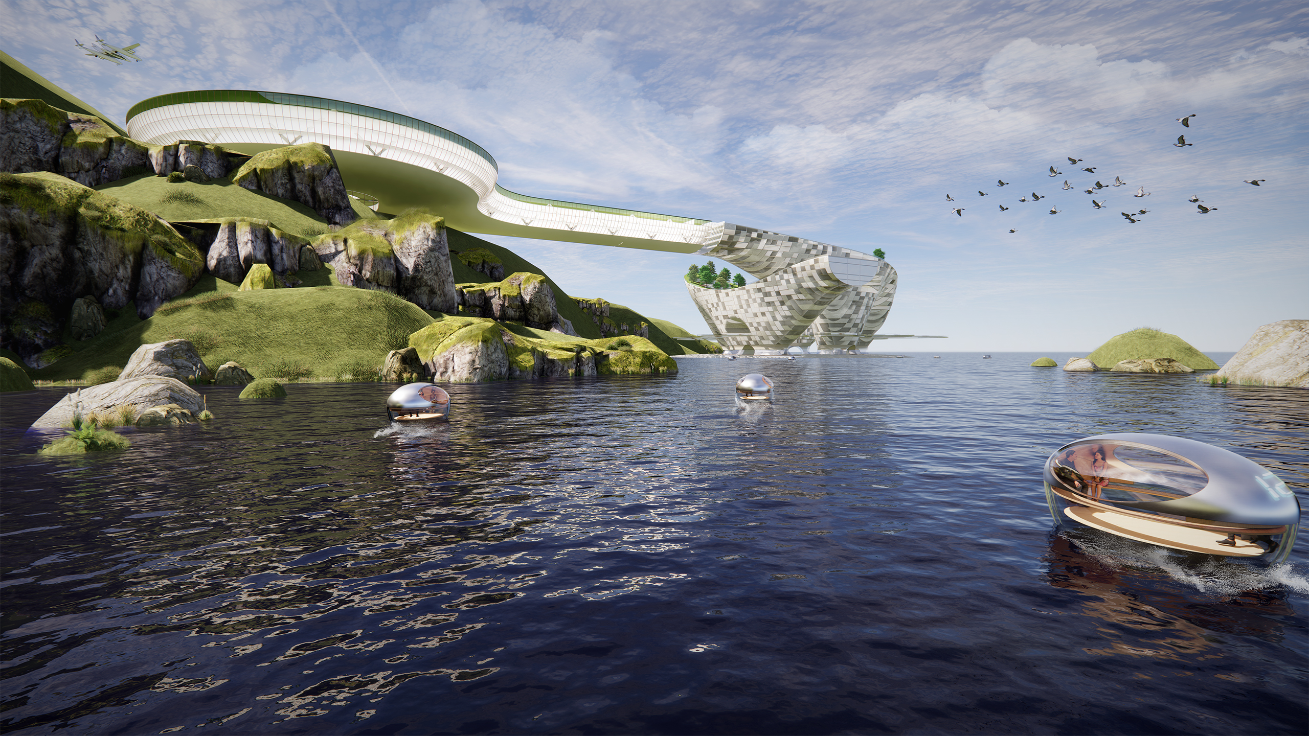Unlike traditional mansions fixed on artificial constructs of cities, this design allows the building to move through the vast natural environment of the sea. This creates a sense of “being welcomed into nature.” By moving across the sea, the architecture aims to contribute to the ecosystem, introducing new values. The rooftop is a habitat for migratory birds, while the floating base is an artificial reef, providing a home for marine life. It aims to create a space that nurtures biodiversity on multiple scales, not only for humans but also for various other living beings.