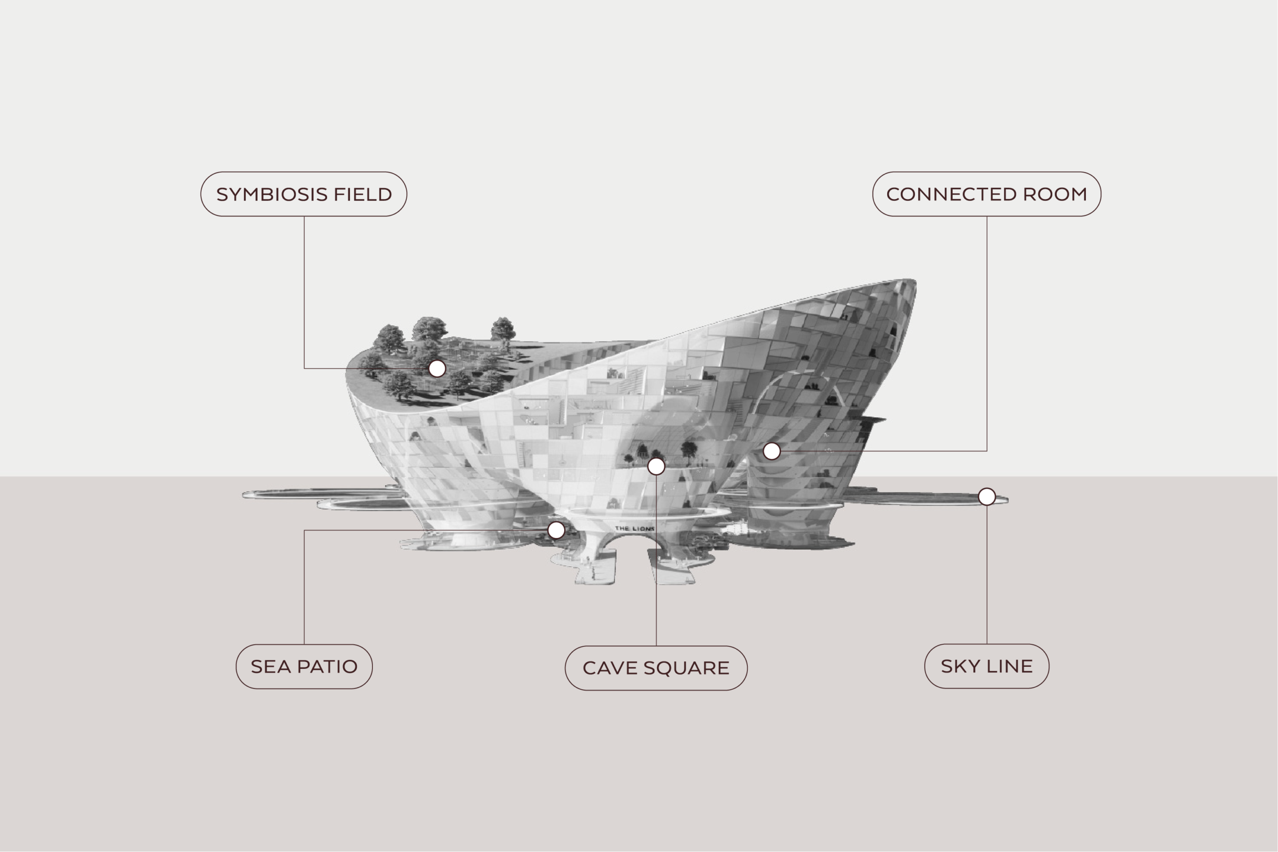Living on the sea might create challenges, like difficulty in meeting relatives or attending school. To address this, the concept introduces a “CONNECTED ROOM.” By sharing spaces and actions, it allows people to access various places. This frees residents from the constraints of a fixed home, enabling freedom to move or choose places to stay. With building-to-building docking and “CONNECTED ROOM,” the proposal aims to free people from traditional living constraints, offering a lifestyle filled with unknown encounters and stories.