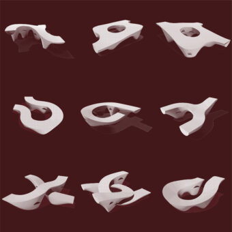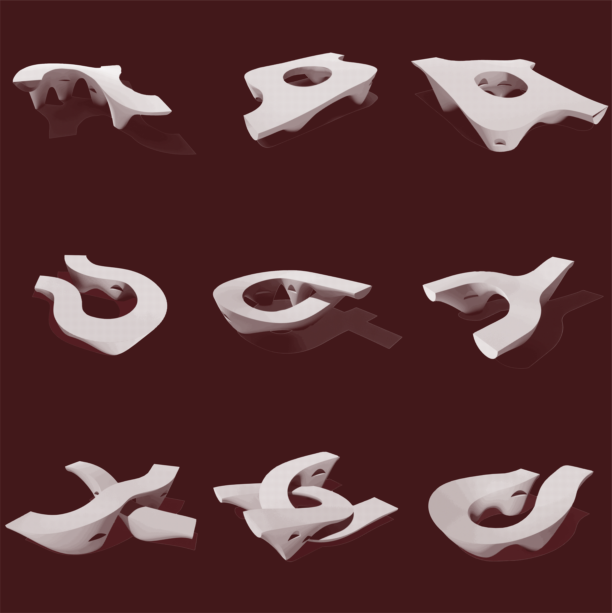 現在の「所有」と「賃貸」という形態から、さまざまな場所や機能を共有しながら、自分の望む暮らしを選択できる新しい価値の提示のため、一つの建築で完結するのではなく、各地に点在するポートやそれぞれの個性を持つ建築と繋がり、自由に移動したり、住む場所を選べるような「ドッキング」形式を試みました。それぞれの建築がユニークな形でありながら、タイリングパターンのように、ランダムに繋がれる全体形状としています。