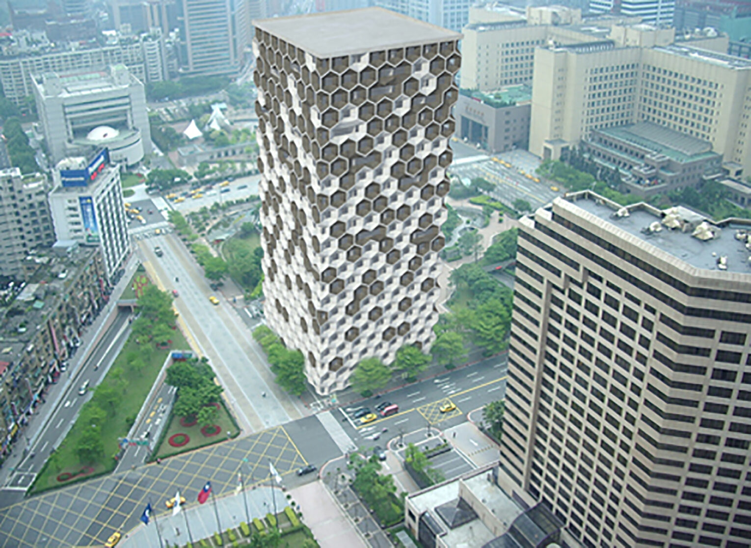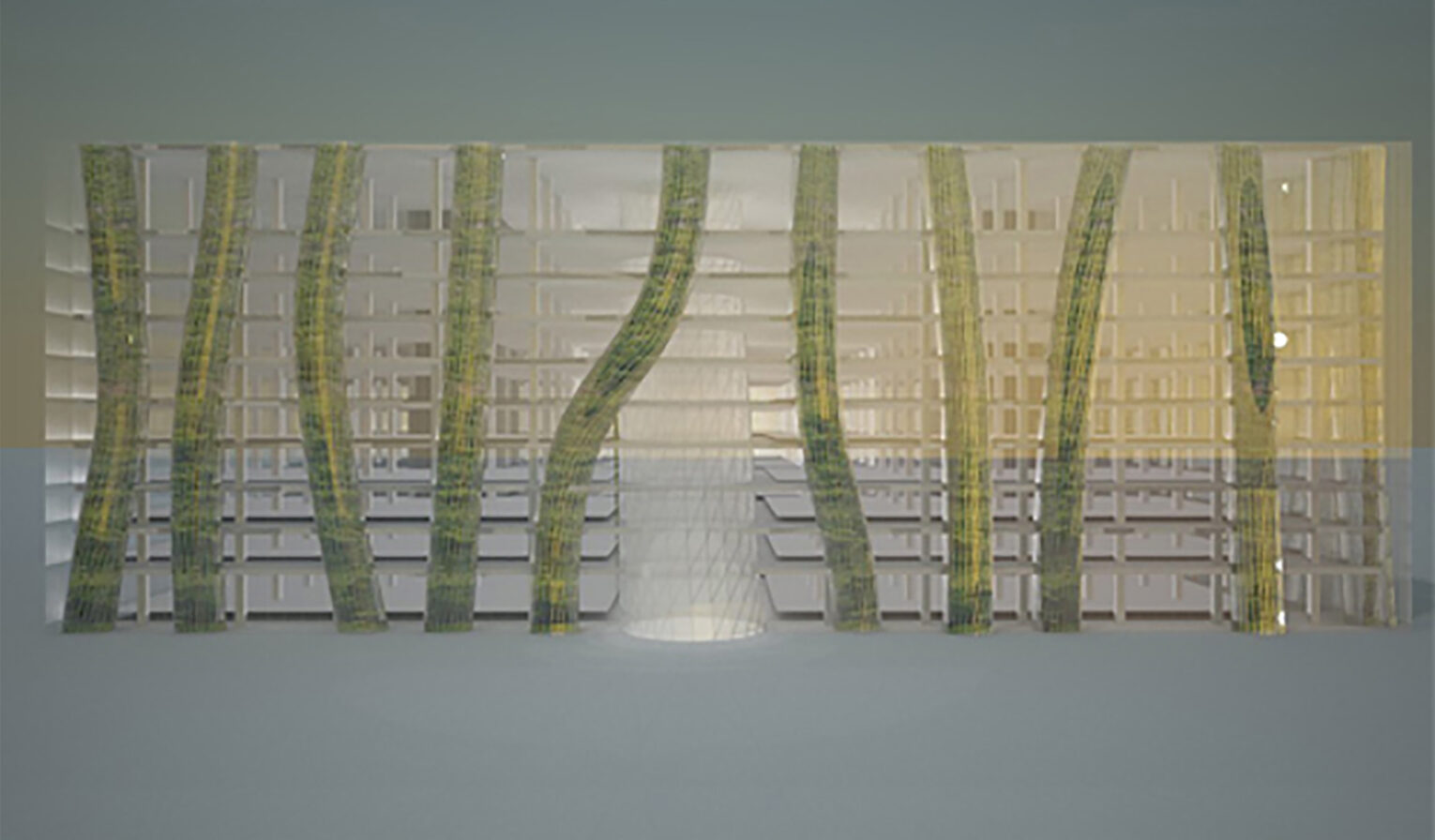 To incorporate natural light and lush greenery, large sliding glass doors are installed along the southern walls of each floor, connected by a series of stepped terraces.