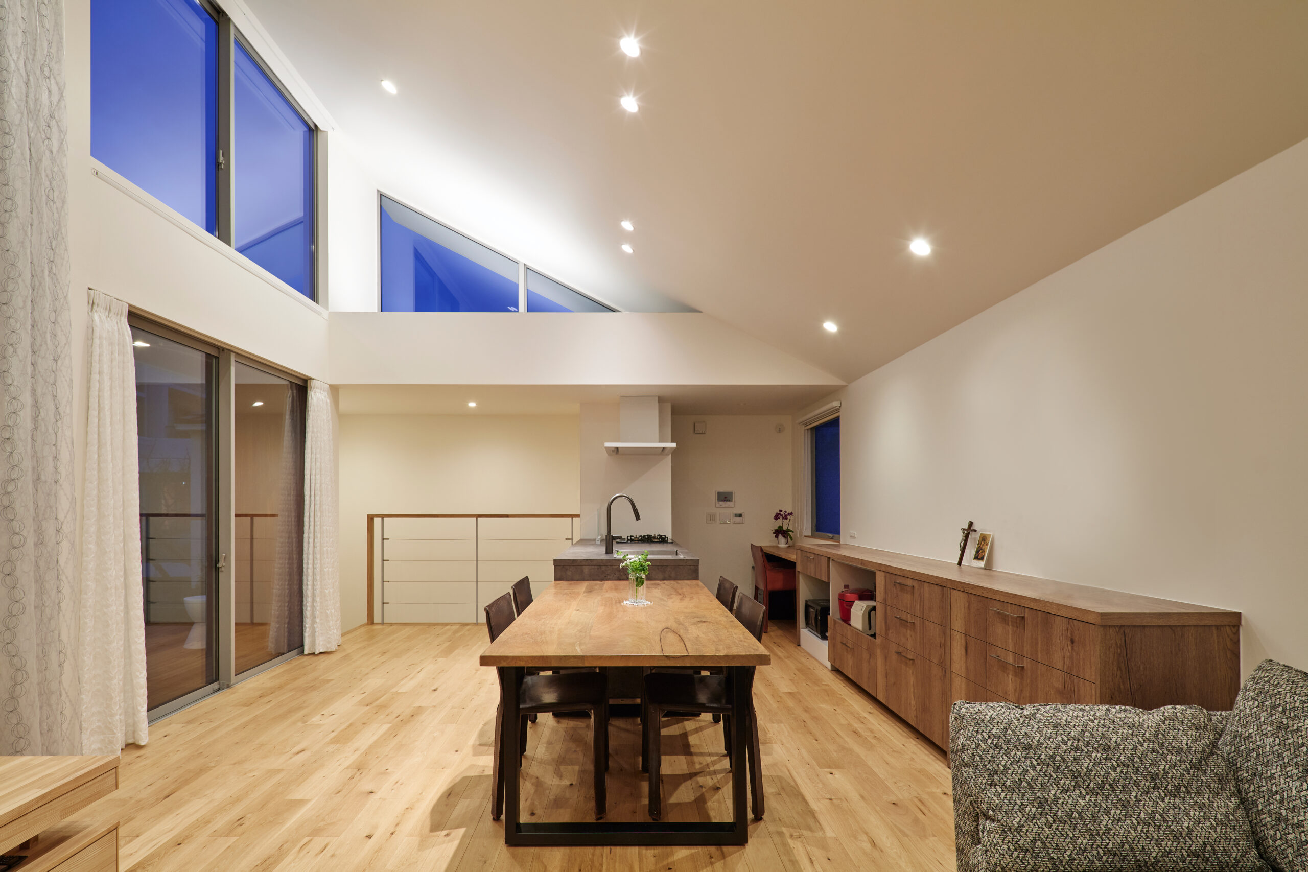 例えば、子世帯のリビングボリュームから押し出された親世帯のリビングの段差は、階段やテレビ台として機能するだけではなく、家族や友人が集まる座席となったり、子供たちが遊ぶ小さな舞台にもなります。さらに、スタジオに突き出した階段は、普段意識することのない階段の上り下りが、スタジオという非日常空間にはみ出し切り取られることで、生活に新鮮な気づきを与えるだけでなく、スタジオを覗く桟敷席として、見て見られる緊張感のある関係を作り出します。