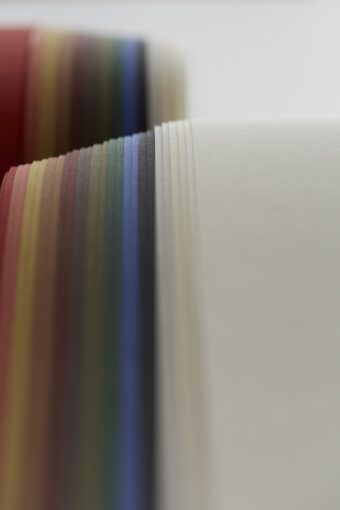 The series work exhibited at TAKEO PAPER SHOW “Subtle,” organized by the paper specialist company TAKEO CO., LTD., includes “BOOK OF TONGUE.” In this piece, the inner bundle of paper bound within a booklet is cut in a “co”-like shape, allowing pages to protrude like a tongue. With a structure resembling layers of earth, the book exhibits a beautiful three-dimensional form with curved lines, while also impressing with its unique subdued color composition.