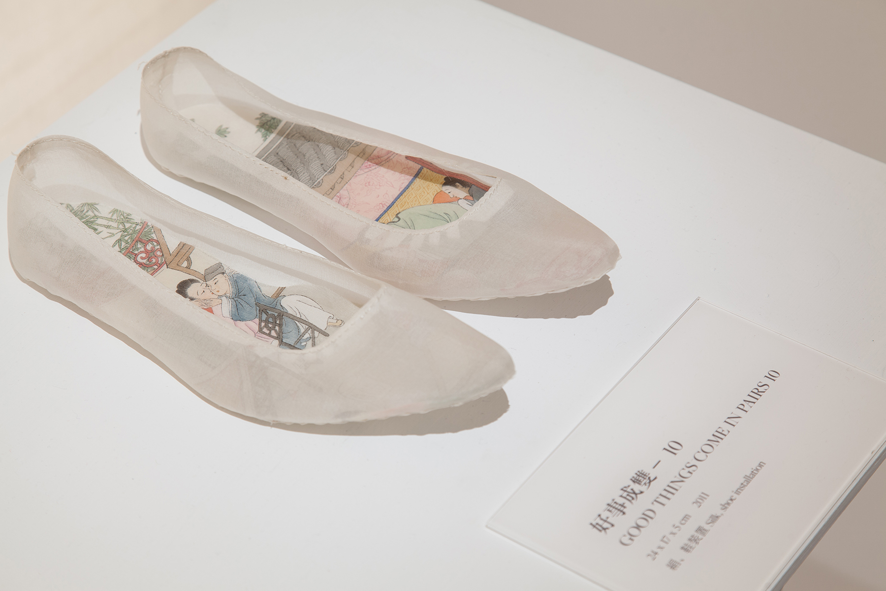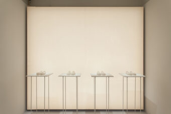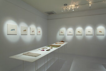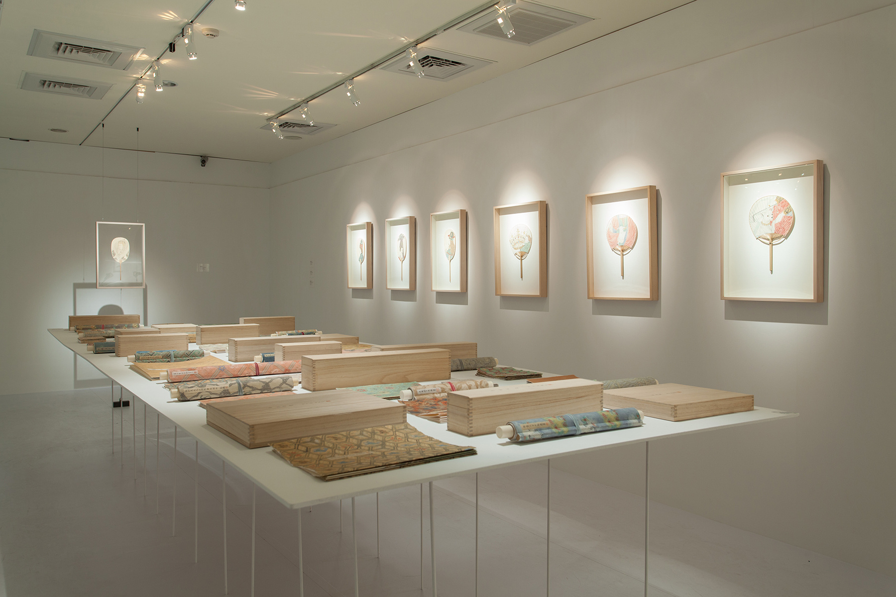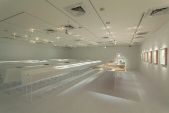 この展示デザインでは、彭薇(Peng Wei)の作品の優美さと繊細さーその光や空気の粒のレベルまで表現するにふさわしい展示環境をつくることを考えた。展示会場である台灣國立歷史博物館はかなり古い建物で、現代美術にふさわしい自然採光の展示空間をつくり出すことは難しかった。しかし我々はここに均一な光に満ちた白い空間を実現し、重量感のない静逸な空気のなかで、彼女の作品の繊細なマテリアリティーやディテールの美を最大限引き出した。