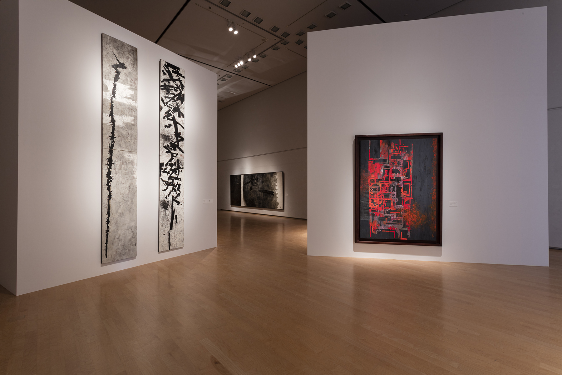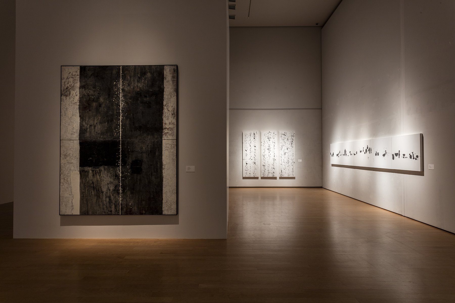 Overall, the exhibition design aimed to create an impression of an infinite abstract mountain range that links time and space, echoing the theme of the exhibition. The art pieces were intentionally arranged not by their chronological order but by their size and style. This seemingly random arrangement invited the visitors to freely stroll back and forth, creating their own paths toWangs works as if they were exploring a dynamic landscape.