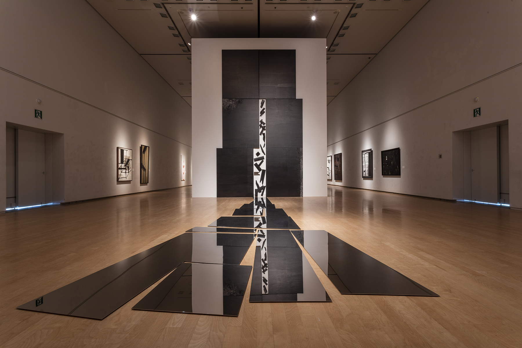NOIZ recently designed an exhibition named “Out of the Mountains: Wang Huaiqing Solo Exhibition” held at Hyogo Museum of Art in Japan. It is the first large-scale retrospective of Wang Huaiqing, one of the most influential contemporary painters in the world. Upon seeing Wang’s works, we were intrigued by the unique merge of abstract geometric motifs that originated from Wang’s Chinese heritage and unexpected materiality. We were also very attracted by the traces of delicate handwork, textures and the minimal color palette in Wang’s paintings. Although the sizes varied, most of the paintings carried a grand yet sensitive presence.